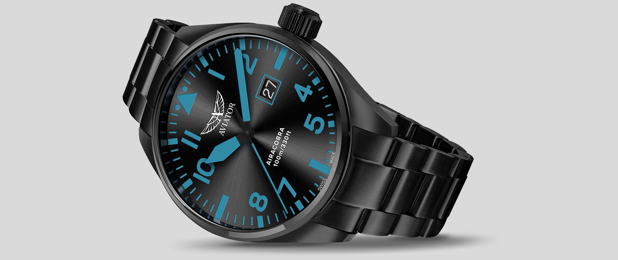What makes the Airacobra tick with precision? Its deliberately designed, Swiss-made ETA F06.161 Movement. Since each Aviator watch is crafted with a movement to meet a specific form and necessary functionality, the Airacobra’s strikingly large calendar date indicator at 3 o’clock sets it apart with distinction. This innovative calibre is equipped with two superimposed date discs that are driven by an exclusive patented technology and it also offers a power reserve of up to 68 months.