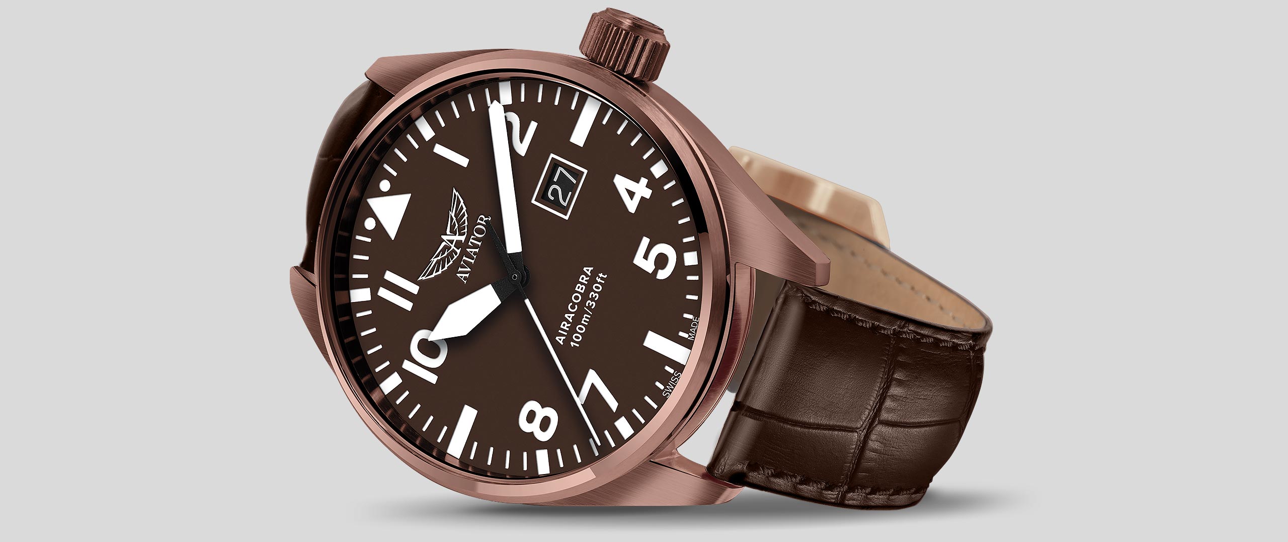 What makes the Airacobra tick with precision? Its deliberately designed, Swiss-made ETA F06.161 Movement. Since each Aviator watch is crafted with a movement to meet a specific form and necessary functionality, the Airacobra’s strikingly large calendar date indicator at 3 o’clock sets it apart with distinction. This innovative calibre is equipped with two superimposed date discs that are driven by an exclusive patented technology and it also offers a power reserve of up to 68 months.