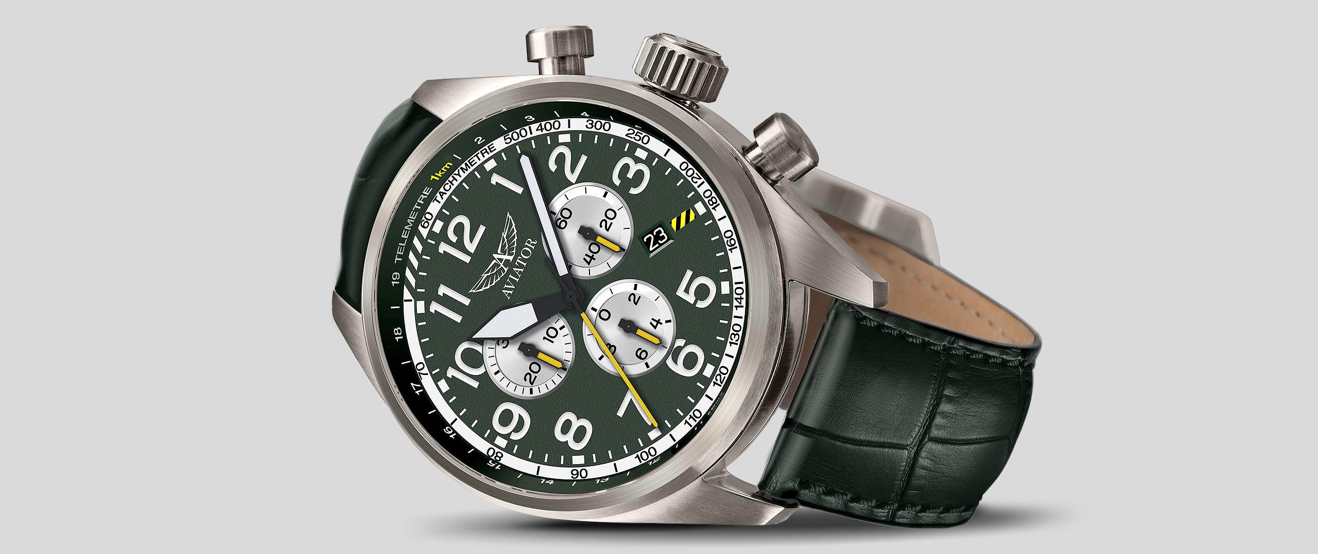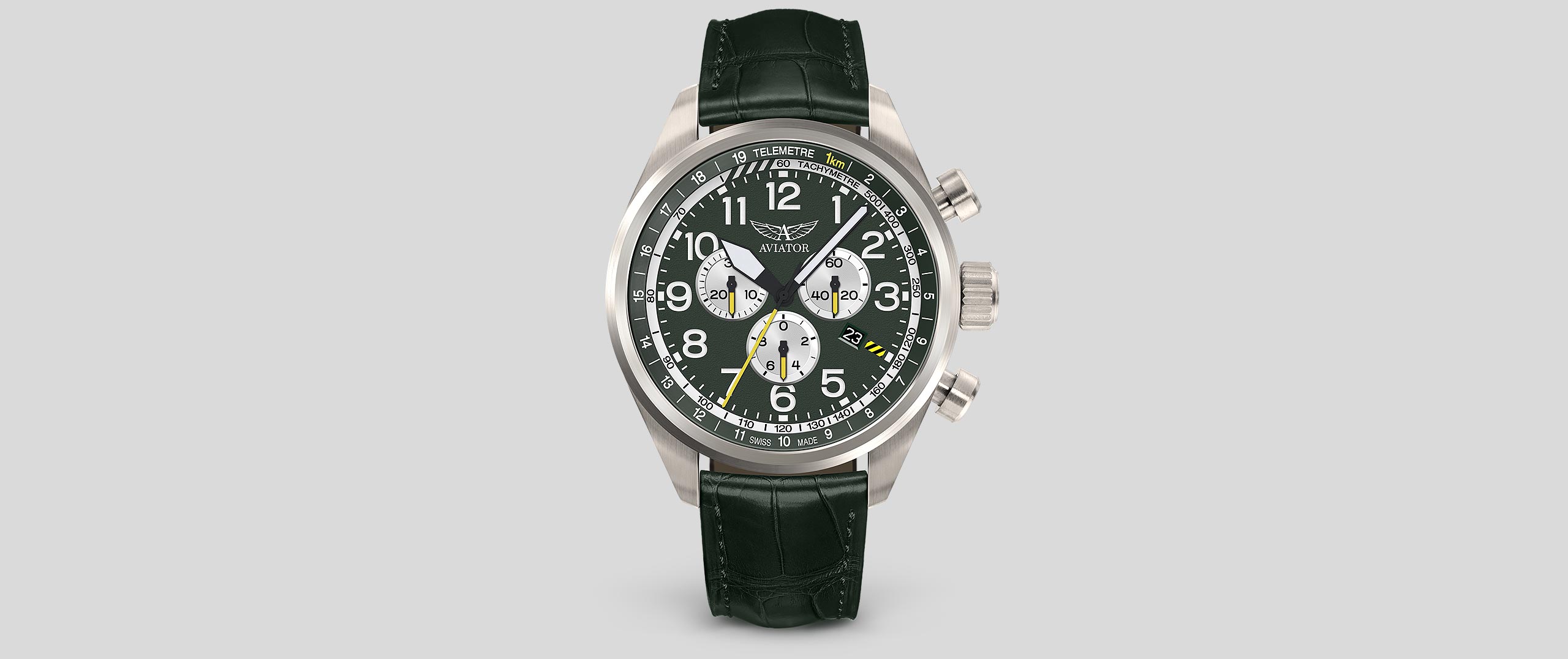 The success of infantry operations during WWII were made possible with the Airacobra supporting troops from the sky. Just as this fighter aircraft was instrumental to both pilots and the mission, the Airacobra P45 Chrono watch offers the same trusted reliability with a tool-like look, inspired by this honorable war hero. Crafted with premium materials, the Airacobra P45 Chrono watch blends military precision with a classic look. Its high-contrast hands and numerals are indicative of the classic cockpit that are matched with a timeless casing and luxurious alligator-style strap. It is the alliance of steadfast reliability and a passion for commemorating aviation history that’s encapsulated in every Aviator watch.