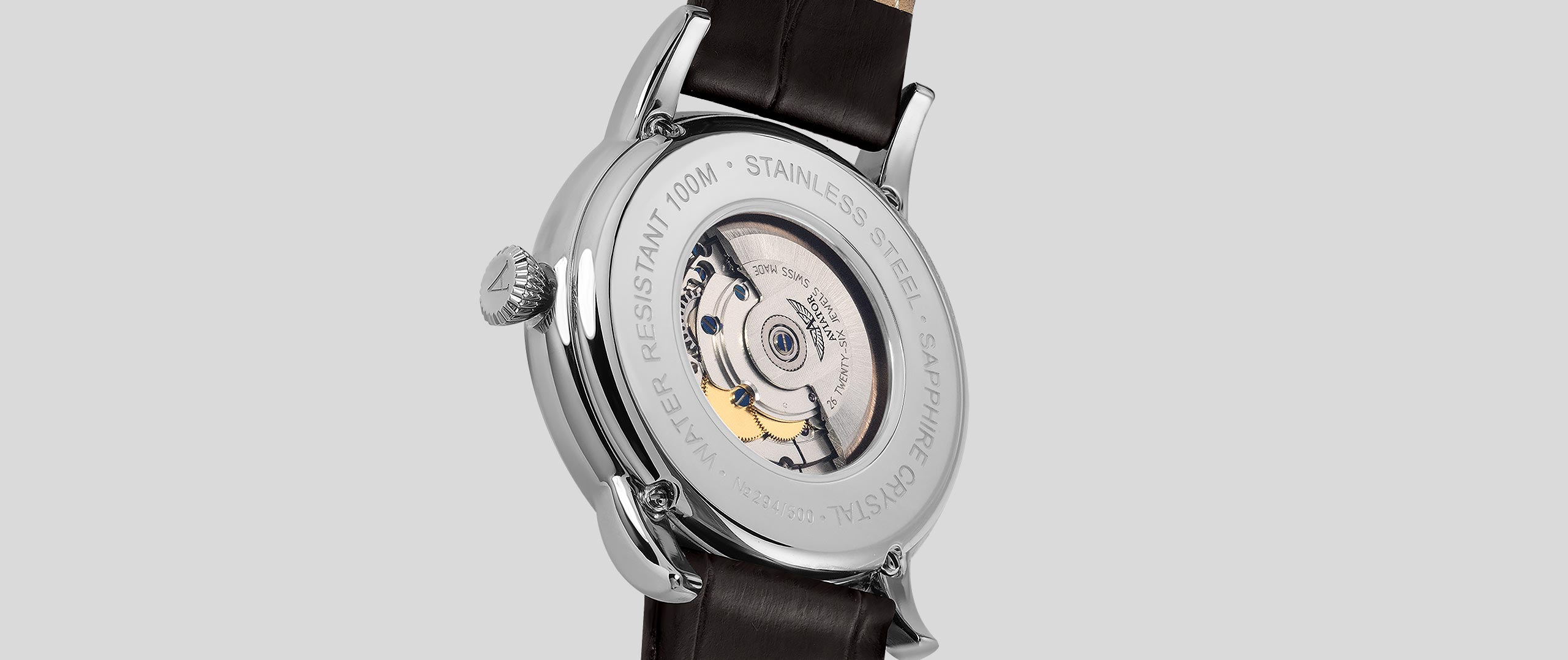 The case is comprised of three symmetrical parts: bezel, body case, back case. Hand-finished with fine watchmaking techniques, its rounded curves are inspired by the graceful sophistication of the Douglas aircraft’s fuselage. Its stunning, mirror-polished surfaces are streamlined by ergonomically sleek lines. And its curved lugs exemplify an elegance from yesteryears, while ensuring a proper fit perfect on any wrist. Like all Aviator cases, it requires more than 40 operations to keep up with rigorous itineraries.