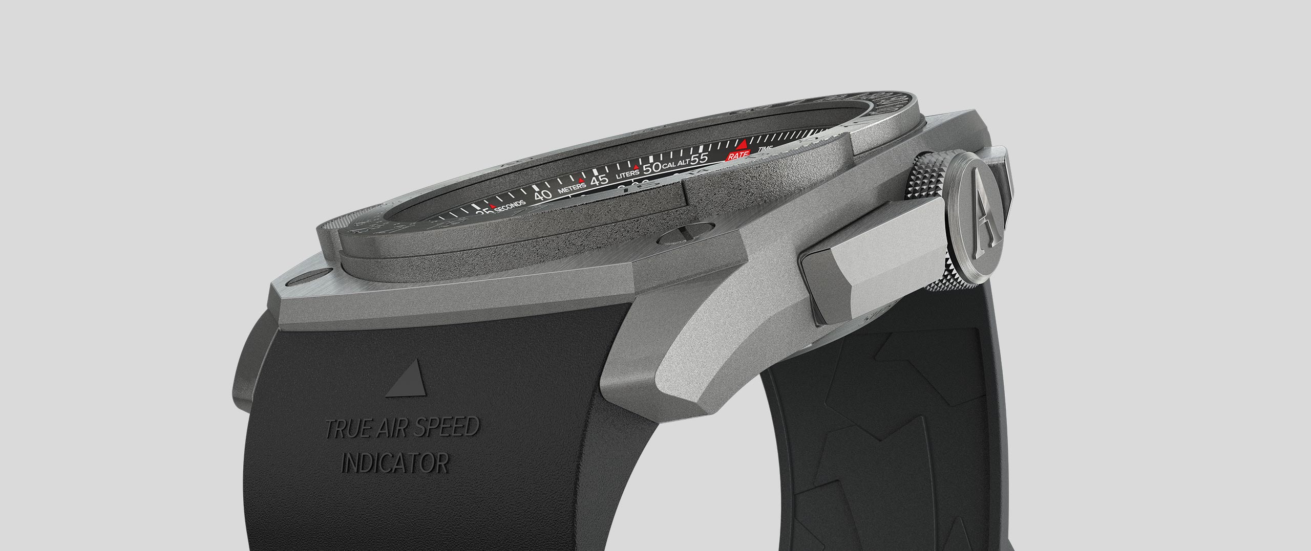 Made from premium materials and high-grade rubber that’s well-designed for an ergonomic fit, every Aviator strap is deliberately developed to meet the highest standard of both design and engineering. The rugged rubber strap features the True Air Speed® inscription, describing the slide rule functionality while paying homage to E6B flight computers, and together lending to this watch’s instrumental look. On the back side, the aeronautical triangular camouflage pattern not only reflects the MiG-29 fuselage, but it is also designed with an airflow pattern to protect the wrist from perspiring in hot and humid weather.